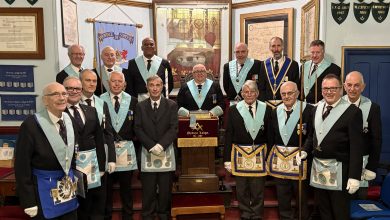 The Olympian Lodge Worshipful Master Andrew Broad a Parachute Regiment veteran, invited as one of his guests Archie Statham, a former colleague and the Chairman of the North East Somerset Branch of the Parachute Regiment Association.