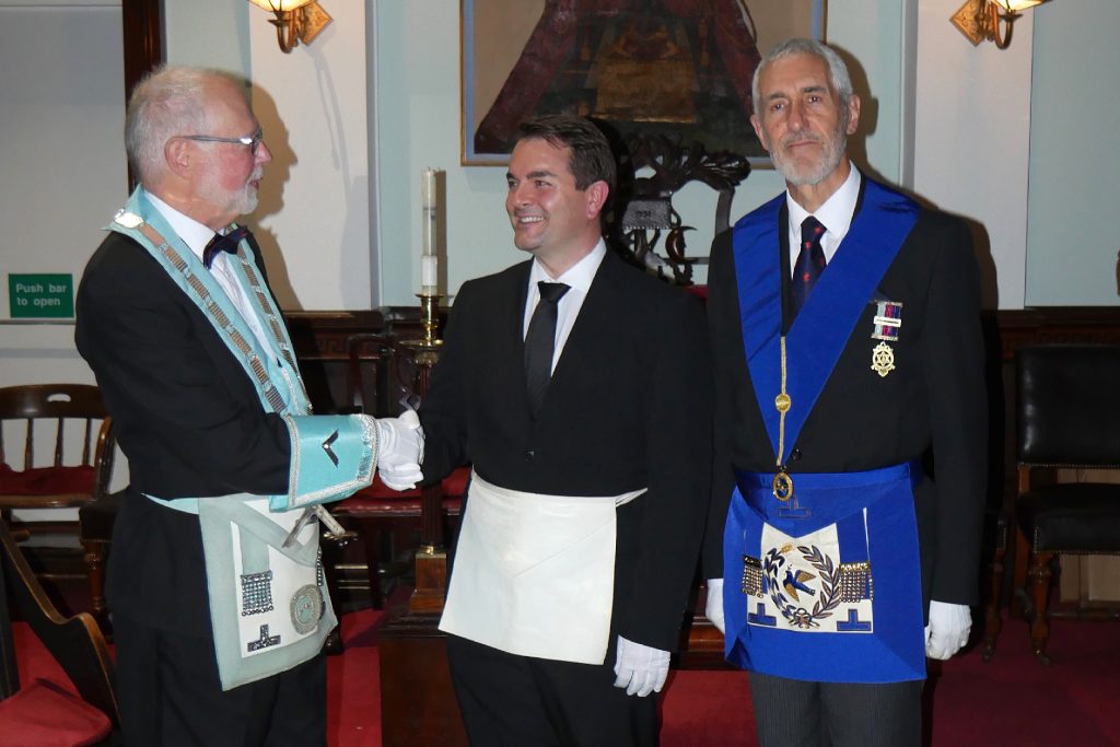 The Lodge was honoured by the attendance of three Grand Officers and the current Masters of, Progressive Science, Corinthian Pillar and the Royal Naval Lodge as well as a goodly number of visitors, all of whom enjoyed a lovely meal together after the meeting.