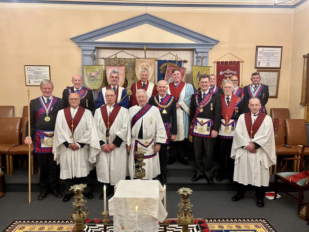 The Grand Superintendent Ray Guthrie was there as well as several other members of the Chapter “Chain Gang”. At the meeting Ray talked about the Membership Challenge and the reduction in the number of Companions in Somerset over the past 25 years which is sadly c30%, however they are looking to reverse this trend and increase the overall membership by 10% (net) per chapter by the end of 2027.