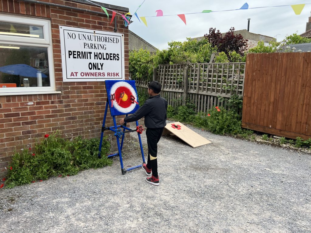 The scene was set and the sun was shining in Burnham on Sea this weekend when the members and guests of the Rural Philanthropic Lodge held their annual summer Barbecue. With over 60 attending it was indeed a very special and enjoyable day. A fun axe and star throwing competition was set up with a charity Masonic Cornhole championship, as well as an indoor bouncy castle for the younger brethren, in case it rained.