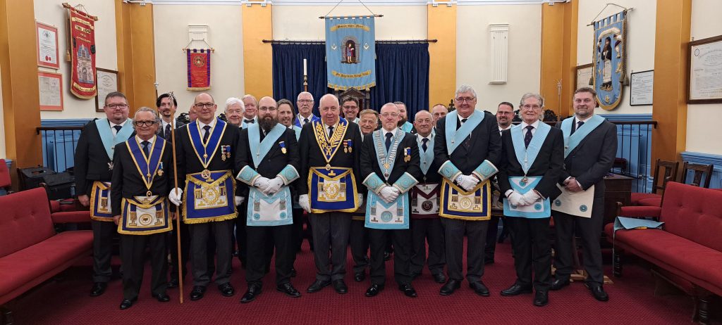 The ceremony was attended by 48 guests and members which included members of Temple Lodge, from the Province of Bristol, where Danny was initiated. The PGM was ably represented by Mike Greedy PAGDC, who showed not only his skills as the Provincial Grand Secretary, but his ritual skills as well! Mike was accompanied by Gary Sharp PAGDC the Provincial Grand Director of Ceremonies. The Installing master Ashley Brown the current Master did a great job of putting Danny in the Masters chair. All who attended had a wonderful evening. It was a great start to the Masonic Year.