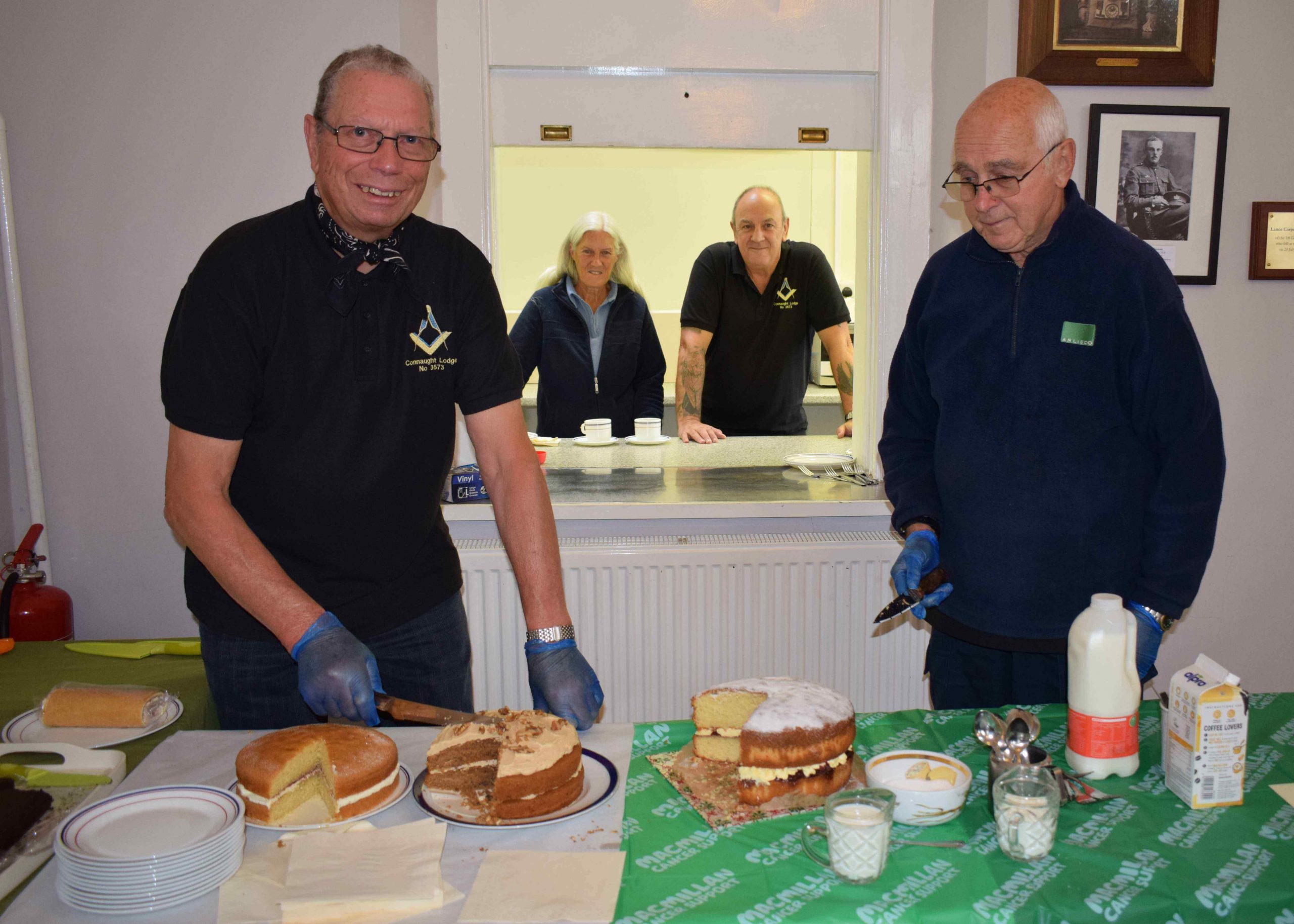 This was a joint effort with Worshipful Brother Chris James and the Worshipful Master, Chris Brooke serving the cakes and drinks, ably supported in the kitchen by the Chris’ wife, Anne and Brother Neil Sunderland. Worshipful Brothers Jerry Hann and Brian Parry kept guests topped up and happy.