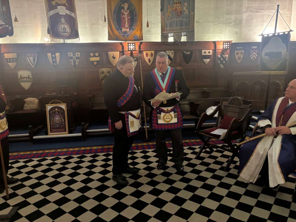 E.comp Adrian Auton remained in the chair of First Principal,E.Comp Emir Kanpulat,was installed as Haggai and E.Comp David Gill was inducted as Joshua. E.Comp Lambert presented a Grand Chapter certificate to Comp Mark Kelley.