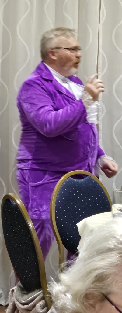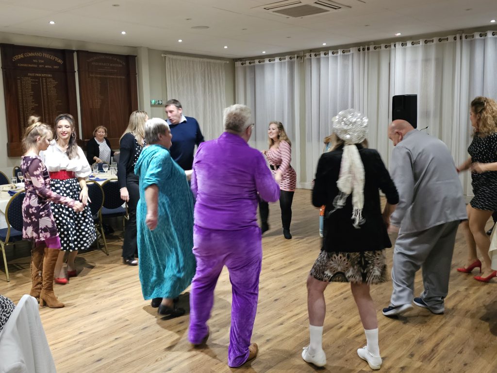 On the 4th October, Lodge Marine held a 50’s/60’s themed evening, open to all at Nailsea Masonic Hall First, a bubbly reception, followed by a delicious 60’s themed dinner (Prawn Cocktail, Chicken Chasseur and Black Forest Gateau, but ‘sadly’ no Blue Nun Liebfraumilch – phew!). Attendees were then superbly entertained by Weston based singer Chrystal Bliss (below right), who has an extensive repertoire covering songs from 1930’s upwards. Well worth checking out her website if other Lodges are planning similar events. Luke Stokes, Master of Marine (below left) dressed up as Austin Powers – Groovy Baby!!