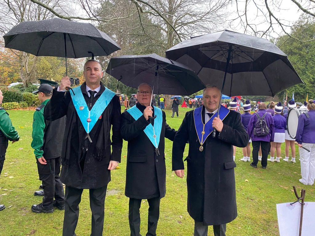 On a wet and windy Remembrance Sunday, members of the Lodge of Fidelity and Sincerity attended the Parade in Wellington. Ably led by their Lodge Master Roberto Carboni, they laid a wreath at the Cenotaph. The Lodge continues to do its best to be visible in the community and promote the fraternity.