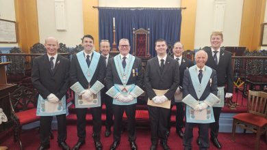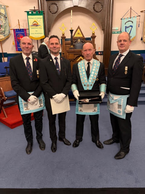 At the recent meeting of Sir Thomas de Cheddre several members of Rural Philanthropic Lodge took the Trowel to them, there would have been more but several members including the current Master were on other Masonic Duties. Lyndon Baker the current JW stepped up to the mark and along with Will Human and Simon Orchard (a new EA) to take to the Trowel to them.