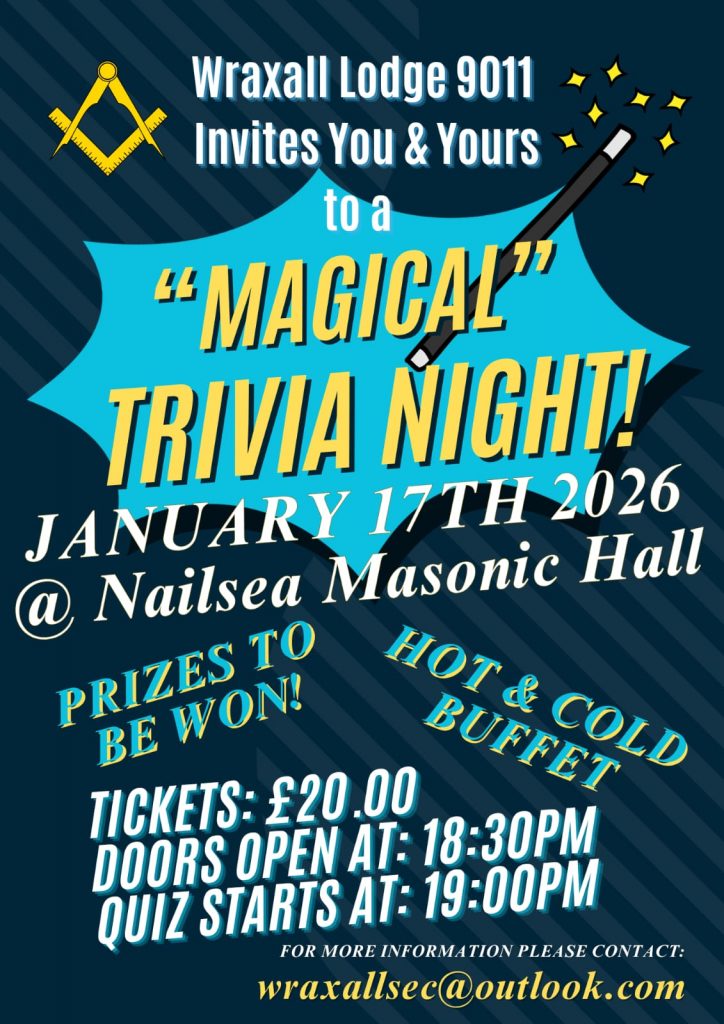 Wraxall Lodge are hosting a night of Magic and Trivia on the 17th January 2026 come along to be amazed and try to win some prizes.