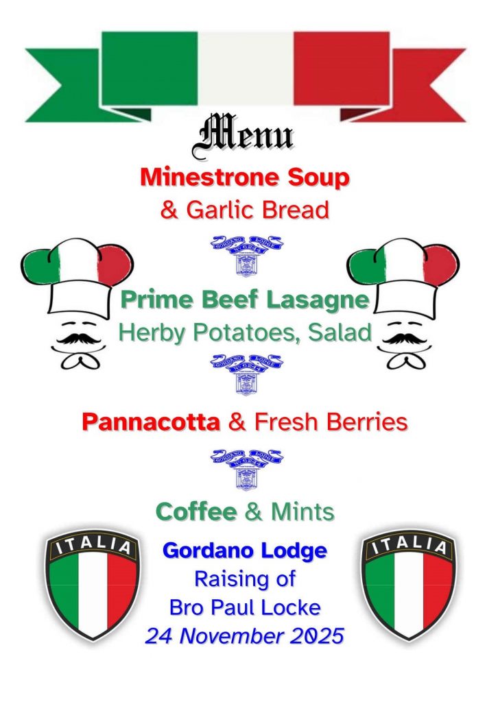 Gordano Lodge hosted an Italian-themed festive board on the evening that Bro Paul Locke was raised to the Third Degree.