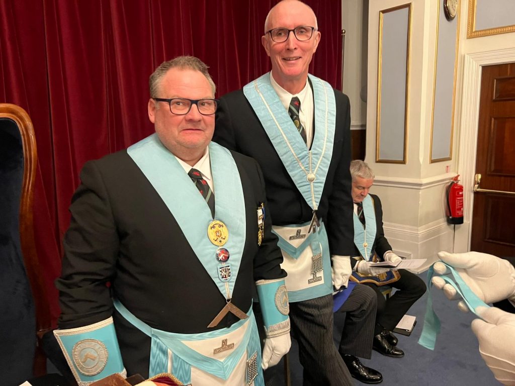 At the last regular meeting of The Somersetshire Lodge, Ian “Bubs” Burbage was installed as its 123rd Master, in excellent fashion by Evan Hand.