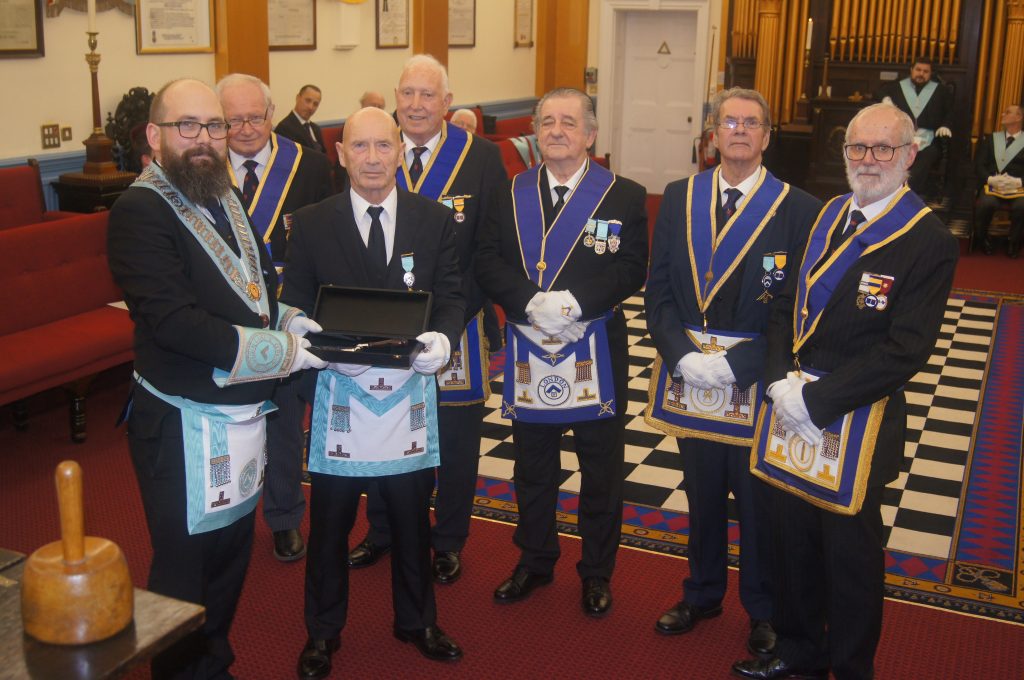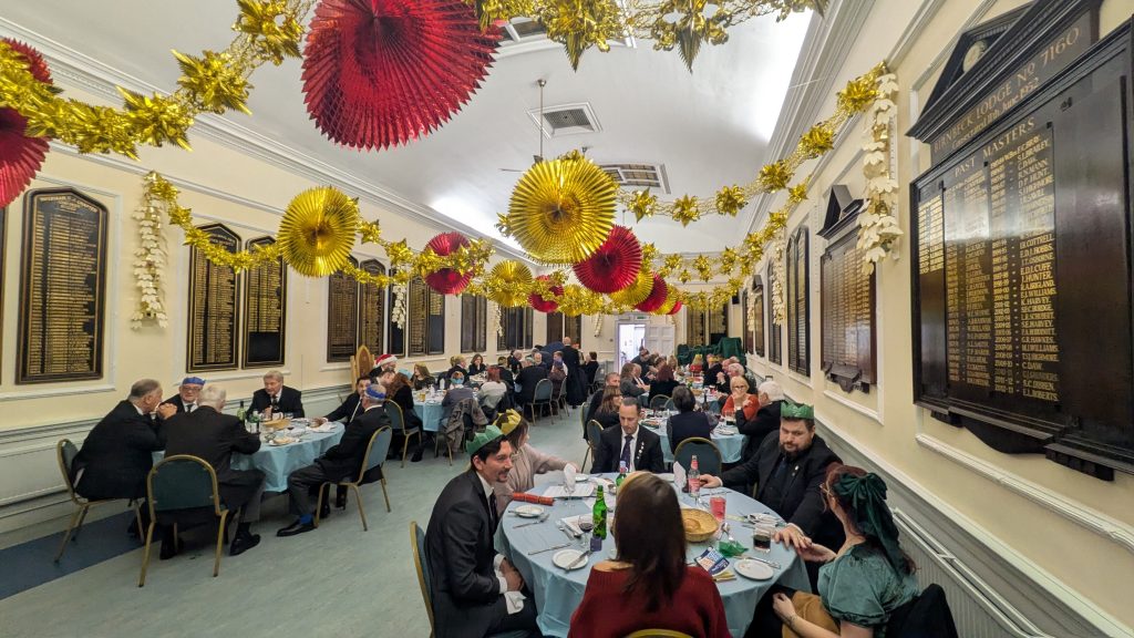 Friday the 5th of December saw Athelstan Lodge welcome the brethren of Thomas De Cheddre Lodge from Wedmore to receive from them the Provincial TravellingTrowel.