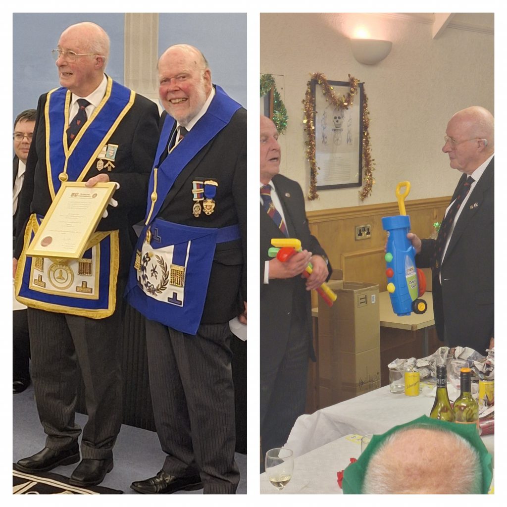 There then followed a lively festive board with toasts to the new Masons and also further accolades for Alan who was grateful to receive a new set of golf clubs.