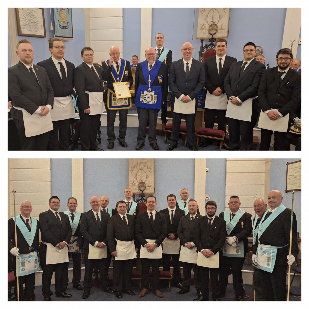 The Lodge of Fidelity and Sincerity who meet in Wellington carried out a double initiation and presented a 50 year Certificate. The Master of the Lodge Roberto, led the Lodge officers in initiating Sergejs and Connah in fine form. This brings the total initiations in the Lodge to seven in the last month.