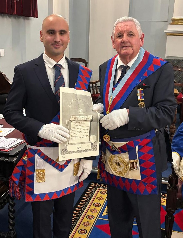 To finish off the December Convocation, Excellent Companion Maldwyn Davies, a Past Officer of The Grand Chapter Of England, presented a Grand Chapter Certificate to Companion Bryan Newton Correa de Faria Raimondi. The Companions retired to a very Festive Festive Board, with a superb traditional Christmas dinner, courtesy of Taunton’s resident 5* caterer Karen Dingle & her team.