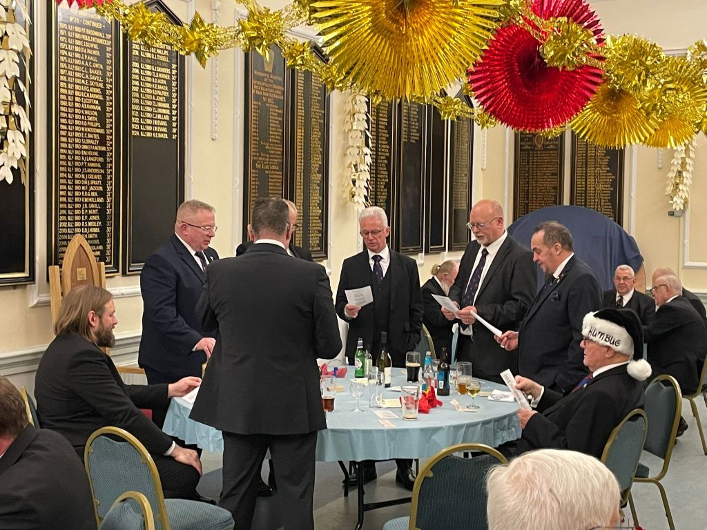 The evenings proceedings was followed by good old fashioned Christmas Caroles with masons favourites 12 days of Christmas and We Wish you a Merry Christmas. Table 3 were clearly winners with their belting performance of 3 french hens… Good job fellas.