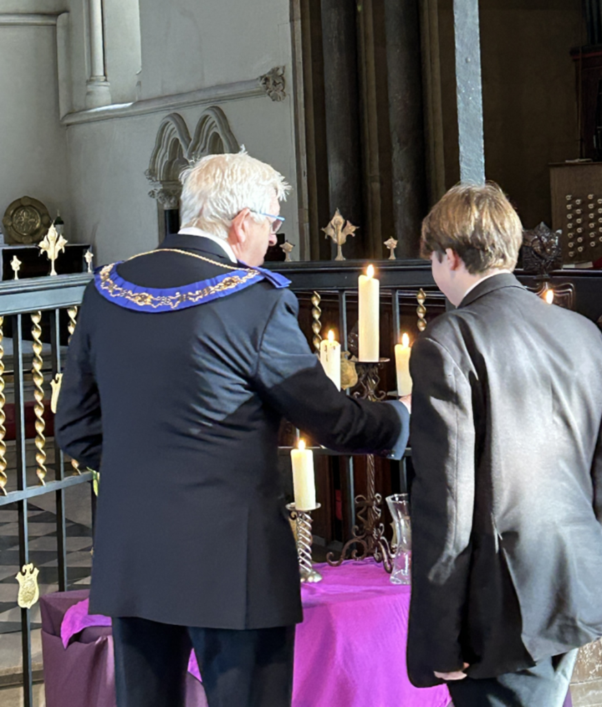 At this year’s Holocaust Memorial Day commemoration event held in Taunton, the Mayor of Taunton, Martin Straus (himself an active Mason), invited Somerset Freemasons to light a candle along with representatives of other persecuted groups. The theme of this year’s event was Bridging the Generations, and those lighting candles of remembrance were assisted by children from local schools.