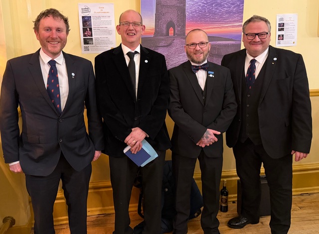 It was a busy night at St Dunstan’s in Glastonbury to initiate Miles Cooper, a local plumber, who has been known by some members for a number of years. The Lodge was nearly full, with a fraternal visit from Benevolent Lodge. There was a goodly number of visitors from across the province, including two brethren from Sussex, one of which was initiated himself just 11 days earlier! The Master Keith Bird, alongside his officers, delivered a smooth ceremony. Past Master and proposer Mark Acreman has known Miles for many years and delivered the charge after initiation in an excellent manner, which was a lovely personal touch for Miles.
