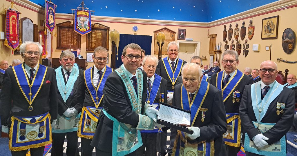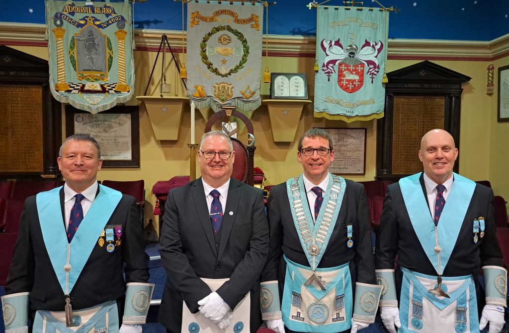 The Admiral Blake Lodge, Bridgwater recently received a large number of visitors at their January 2026 meeting from the Lodge of Unanimity & Sincerity, Taunton who brought the Travelling Trowel to the Lodge. The brethren were delighted to have so many visitors join us from Taunton, and are looking forward to taking the trowel on to Exmoor Lodge in Minehead later this year.