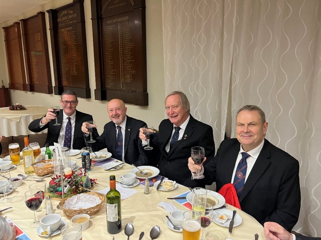 After the Risings the Chapter was closed in peace and harmony, the companions adjourned for the “Festive” Festive Board, with Turkey and all the trimmings again up to the normal excellent Nailsea standard. A very pleasant evening was had by all the companions of Tyntesfield Chapter and the good number of visitors.