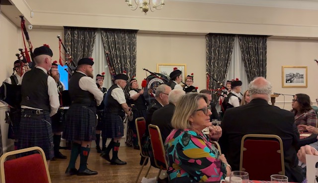 Several members of the Rural Philanthropic Lodge, including the brand new WM, Ian Chedzey (only Installed the night before) the Immediate Past Master Malcolm Price, and their partners, visited Wales to attend a Burns night at Nioba (Newport) Lodge on Saturday night. It was a great evening with a 17 piece pipe band and excellent speeches, poems and songs celebrating the life and works of Robbie Burns who was also a Freemason.