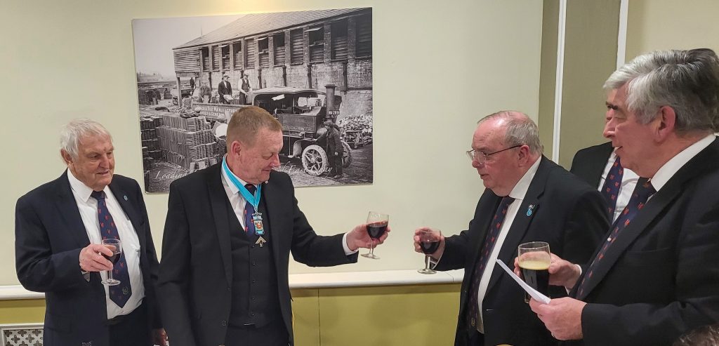 The other Lodge guests included Grand Officers Richard Winter & Adrian Robson, along with visiting Brethren from around Somerset and a close friend of Sean’s from the Province of Northamptonshire & Huntingdonshire. The Immediate Past Master, Peter James surprised Chris Marchmont with a Masonic Pen, to mark the end of his magnificent time as the Tynte Lodge Secretary; Chris has now stood down after an impressive 11 years in office.