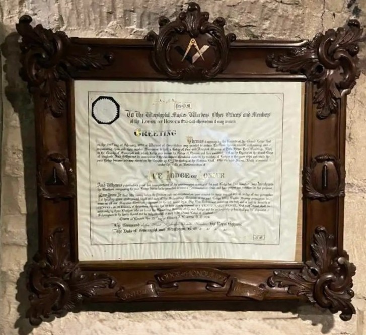 Members of the Lodge of Honour were recently delighted to see their Bicentenary Warrant formally placed on display at Bath Masonic Hall. The warrant commemorates a significant milestone in the Lodge’s history, having celebrated their 200th Anniversary, marking two centuries of continuous existence.