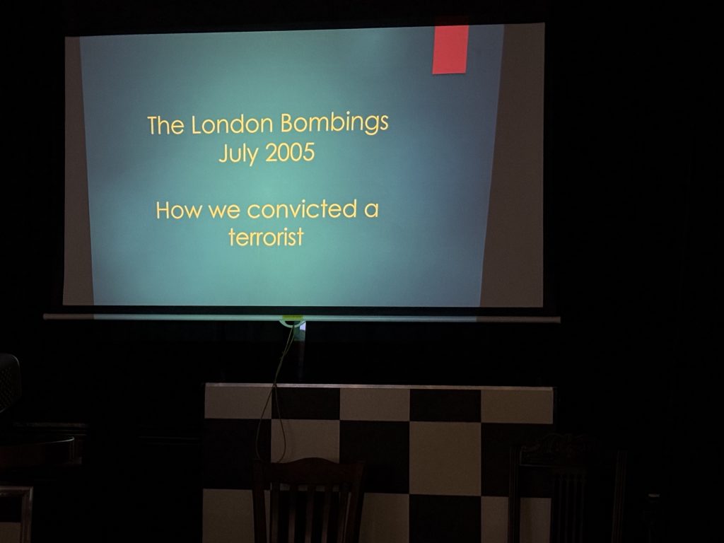 Tonys talk about the horrific events on the 7th July 2005, was again quite gruesome (52 deaths and 800 wounded) yet interesting, delivered in his usual sincere yet humorous way.