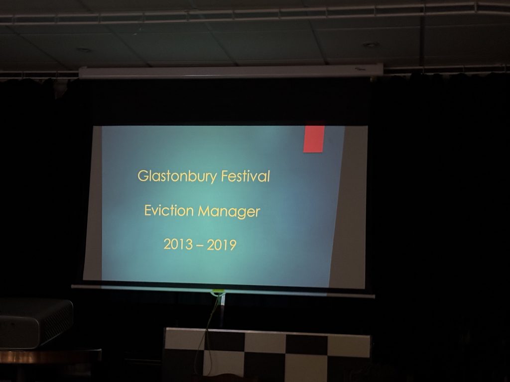The talk was rounded off with anecdotes of Tony’s time as the eviction officer at the Glastonbury Festival, (apparently they evict over 600 people each event for trying to get in under false pretences) which was much lighter and very funny.