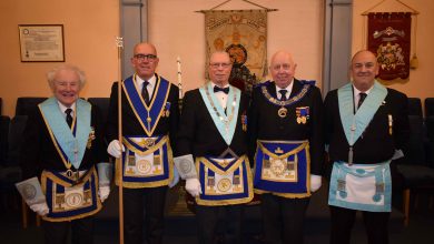 The month began with members visiting Calderley Chapter in Clevedon, continuing Adair’s focus on supporting meetings across Somerset. A highlight was a demonstration evening on the formation of Grand Lodge, complete with period dress and a detailed look at historical ritual practices.