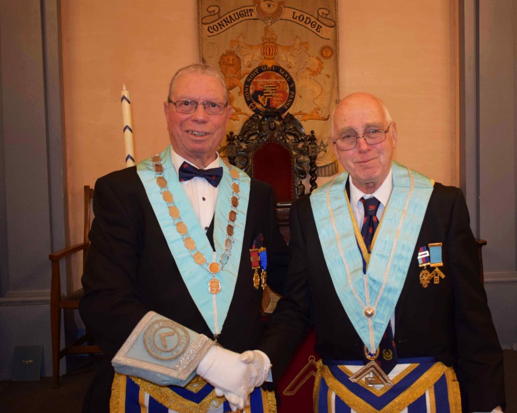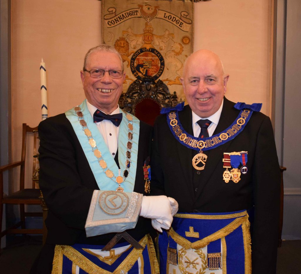 Worshipful Brother Michael Greedy, accompanied by his DC, Andy MacKay, for the
