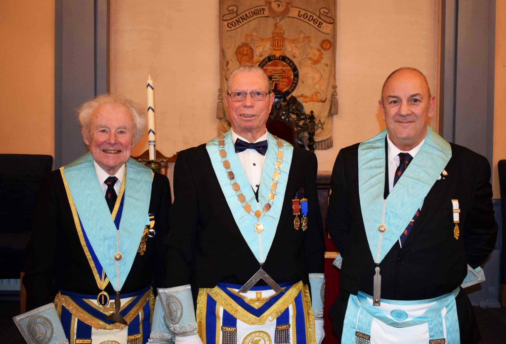 attended the ceremony to witness Chris Brooke install Chris into the ‘Chair’. In the interests of getting them involved in Lodge activities as soon as possible, our two new Entered Apprentices were appointed as Stewards, Brian Parry and Neil Sunderland were appointed SW and JW respectively.